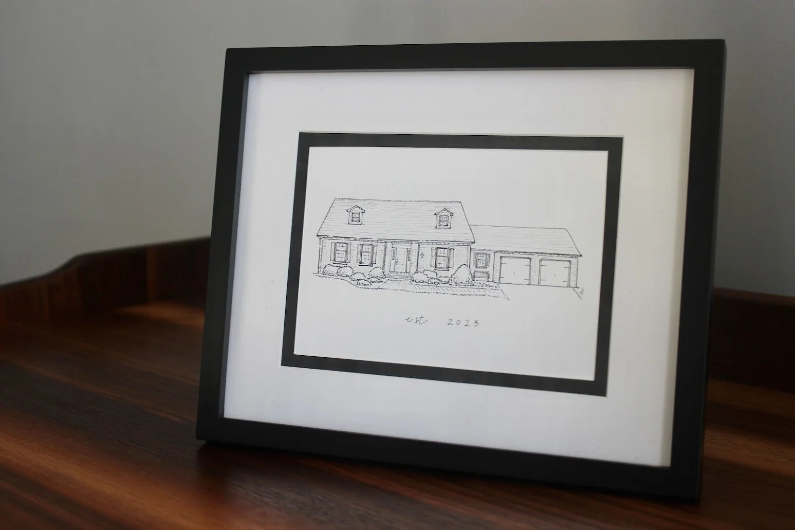 Hand-drawn original home portrait, 5"x7" (frame is 8"x10")